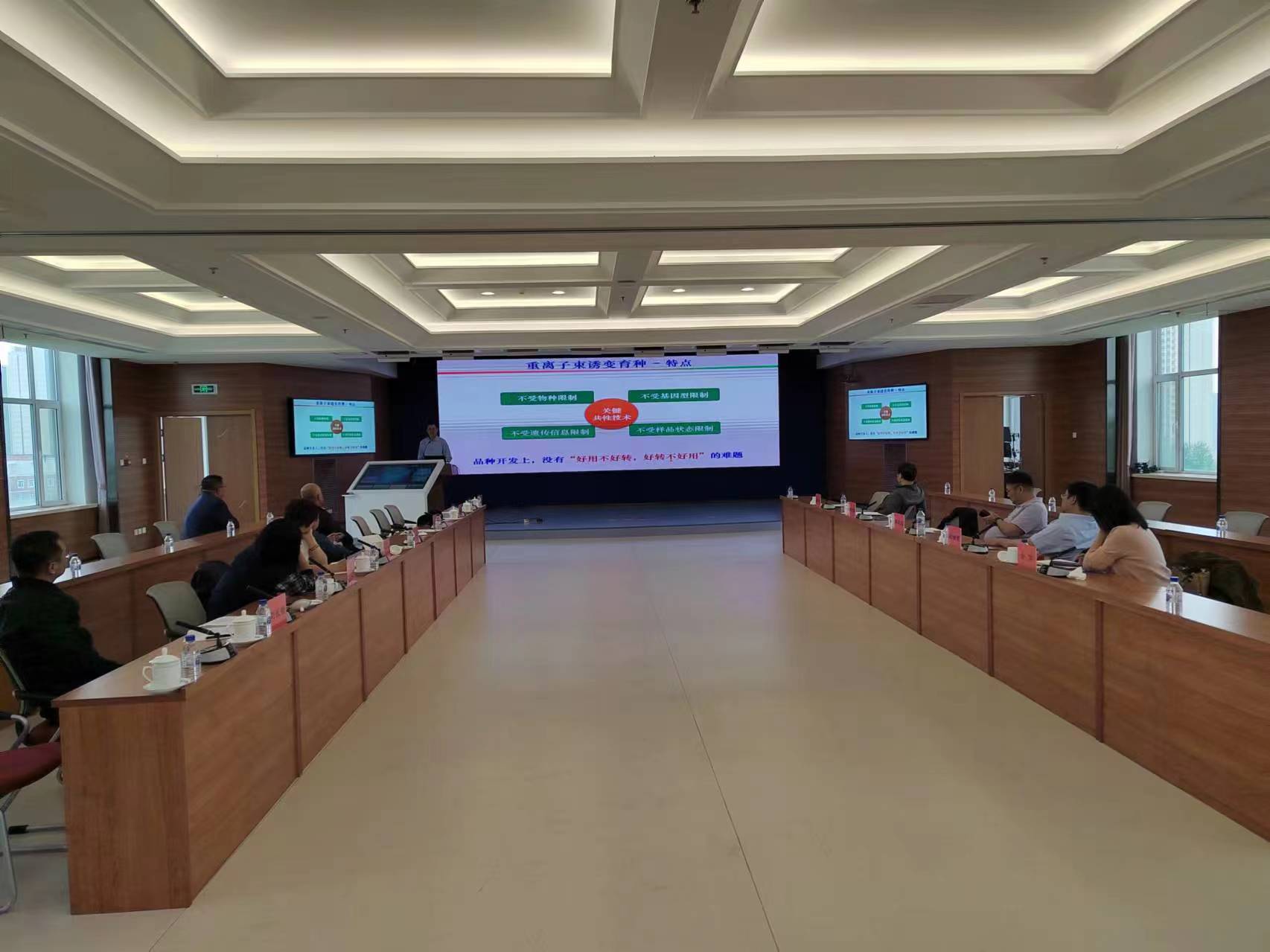 座谈会上,姜明对胡正国一行表示热烈欢迎,感谢近代物理所对东北地理所在水稻、大豆和羊草等育种领域的支持和帮助,表示未来将与近代物理所和中国科技大学国家同步辐射实验室开展更加深入的科研合作。胡正国介绍了近代物理所重离子加速器大科学装置的研究现状和多学科重大科技创新成果,并强调重离子束辐射诱变育种及种质资源创制研究是重离子加速器大科学装置的重要研究方向,也是与东北地理所合作的重要研究领域。