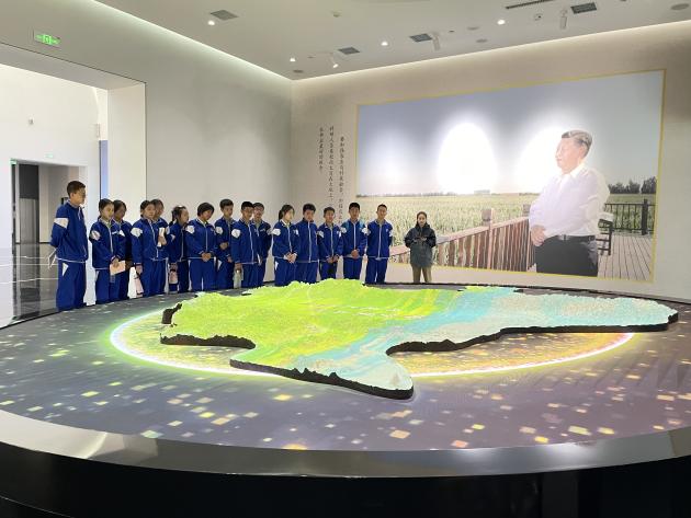 英才学校师生们在志愿者的引导和讲解下,参观了东北黑土地保护与利用创新研究院,认识了东北黑土区不同土壤类型分布以及不同土壤类型特性。在智慧农场实验室,工作人员现场进行了精量滴灌等操作演示,学生们对现代化智慧农业产生了浓厚兴趣,不断进行观察和记录。在数字农业展厅,参观了鸿鹄系列无人驾驶电动拖拉机、植保无人机、数字农业卫星等智能农业机械模型。