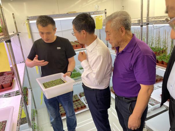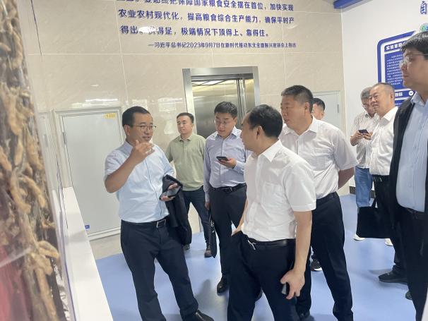 在农业楼,马驷骢博士介绍了黑土地保护性耕作技术及机械。大安站站长梁正伟研究员详细介绍了盐碱地“良田+良种+良法”三良一体化高效治理与综合利用“大安模式”技术内涵、自黑土粮仓科技会战以来“大安模式”的技术推广应用情况。杨帆研究员介绍了苏打盐碱土壤专用改良剂产品落地情况。李伟强研究员介绍了植物耐盐碱机制与耐盐碱水稻育种技术。在种质资源楼,程志远介绍了分子设计育种工作进展及“东生”系列大豆新品种选育与转化工作。在研究所展馆,王敏玲介绍了研究所历史沿革、学科布局、承担任务、科技平台与人才队伍等情况。齐北松博士介绍了“黑土粮仓”科技会战指挥中心与智慧农业管控平台。