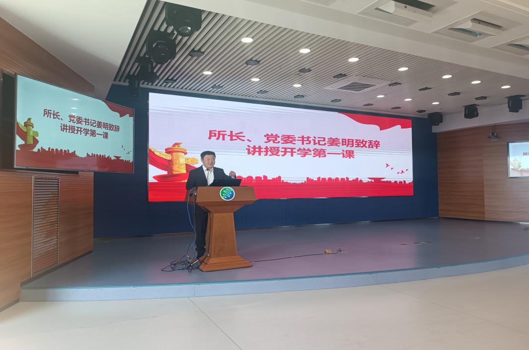 开学典礼在雄壮的国歌声中拉开序幕。姜明代表研究所党政领导班子致辞并为同学们讲授开学第一课。他热烈欢迎来自祖国各地的新同学加入到东北地理所大家庭,希望同学们尽快适应新角色,不断提升自己的研究能力、实践能力。他衷心希望每位新同学都能够秉承东地精神,牢记黑土精神,在新的起点做出新的贡献;在历练中成长,走出自己的路;作为东地人,心系国家事、肩扛国家责,为国家科技事业发展贡献自己的力量。
