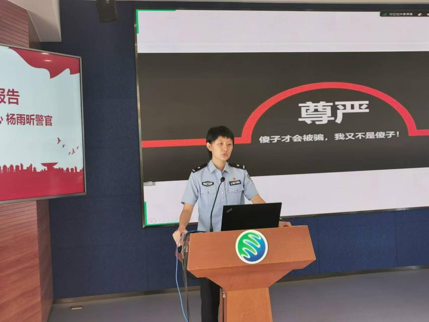 在安全教育环节,来自长春市公安局反诈中心的杨雨昕警官为同学们做了《青春守法 “警”防有诈》的专题报告,以大量真实的案例为同学们讲授了一堂生动的普法课,希望同学们在日常生活中提高防范意识,做遵纪守法的好公民。
