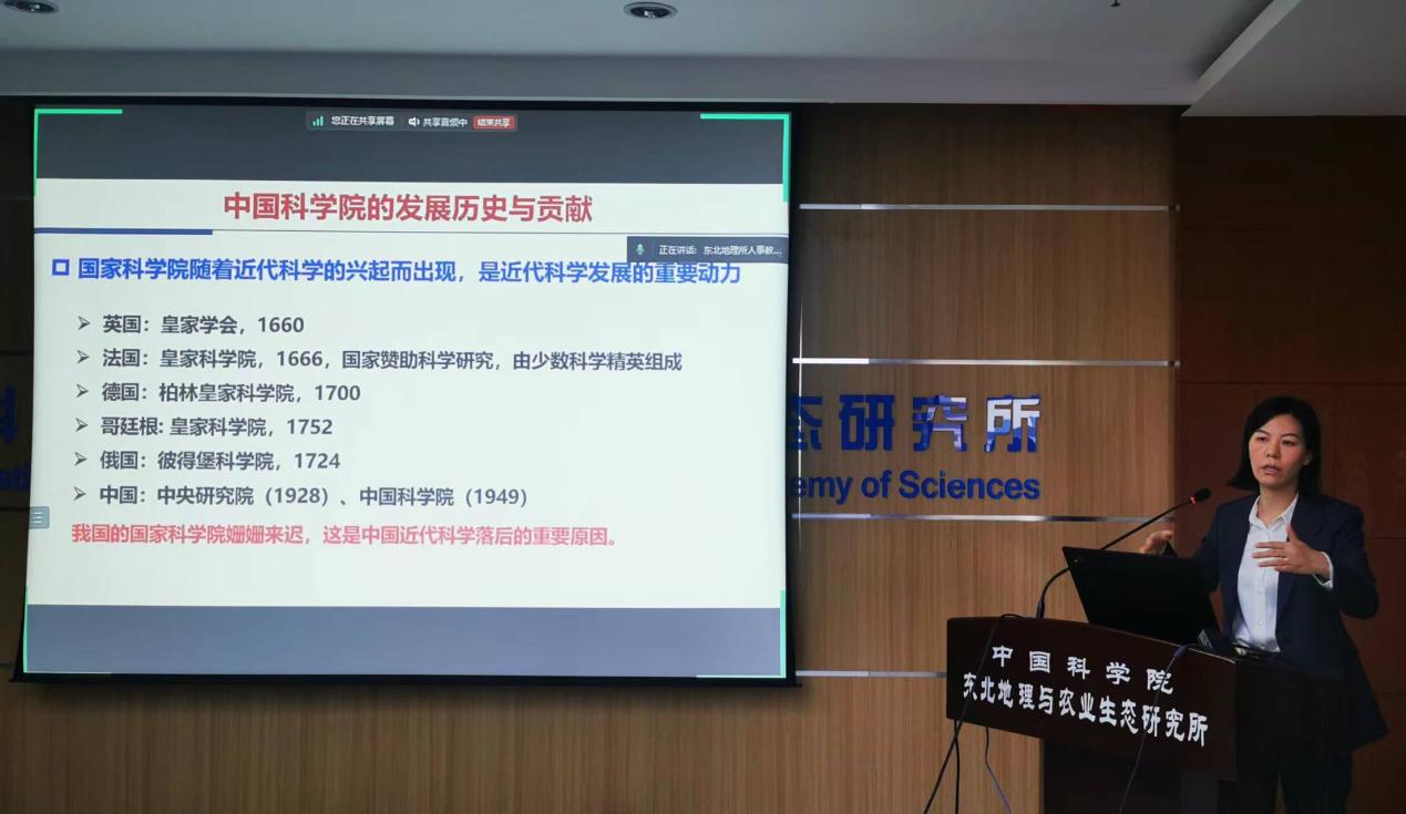 所务委员、湿地重点实验室常务副主任祝惠以“弘扬科学家精神 逐科技强国之梦”为题做专题报告。她介绍了中国科学院的发展历史与贡献、科学家精神内涵、在黑土地上传承科学家精神的历程,详细解析了科学家精神的丰富内涵和弘扬科学家精神的时代背景与重要性,希望新职工持续努力学习、忠诚担当,践行科学报国之志,传承科学家精神,赓续黑土地上的锦绣华章。