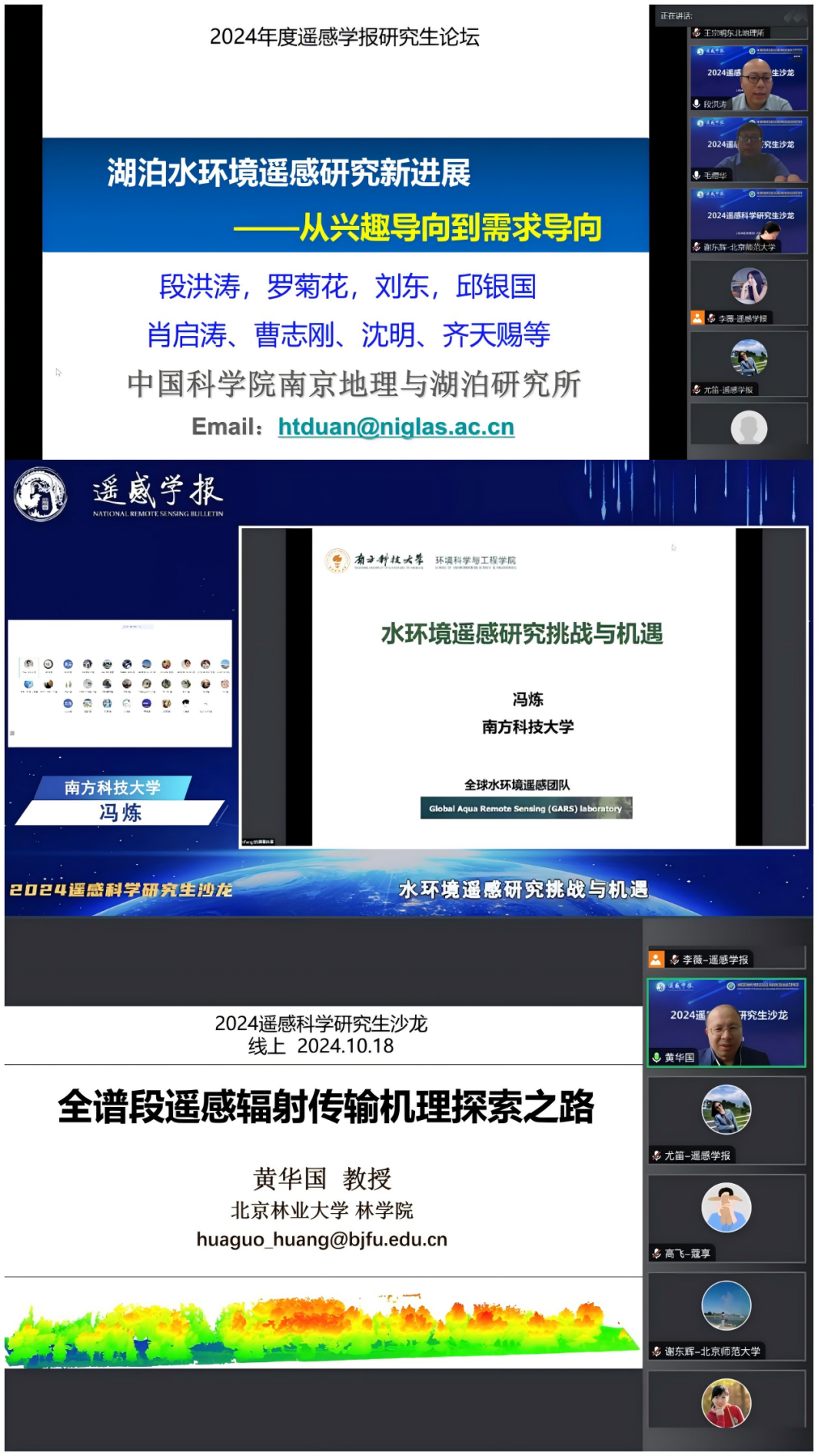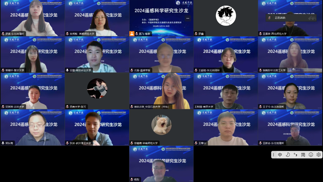 研究生是科学研究新质生产力的核心,为遥感科学与技术领域青年学子搭建全国高水平学术交流平台,培养研究生对该领域的研究兴趣,激发研究生的创新精神,增进研究生对科学前沿的了解,由《遥感学报》主办、中国科学院东北地理与农业生态研究所(东北地理所)承办的“2024遥感科学研究生沙龙”于10月18—20日,在长春(线上)成功召开,黑土地保护与利用全国重点实验室(筹)、吉林省遥感学会、中国生态学学会生态遥感专业委员会联合承办。来自南京大学、复旦大学、吉林大学、中国科学院空天信息创新研究院、中国科学院南京地理与湖泊研究所等全国49家单位共129研究生报名参加。