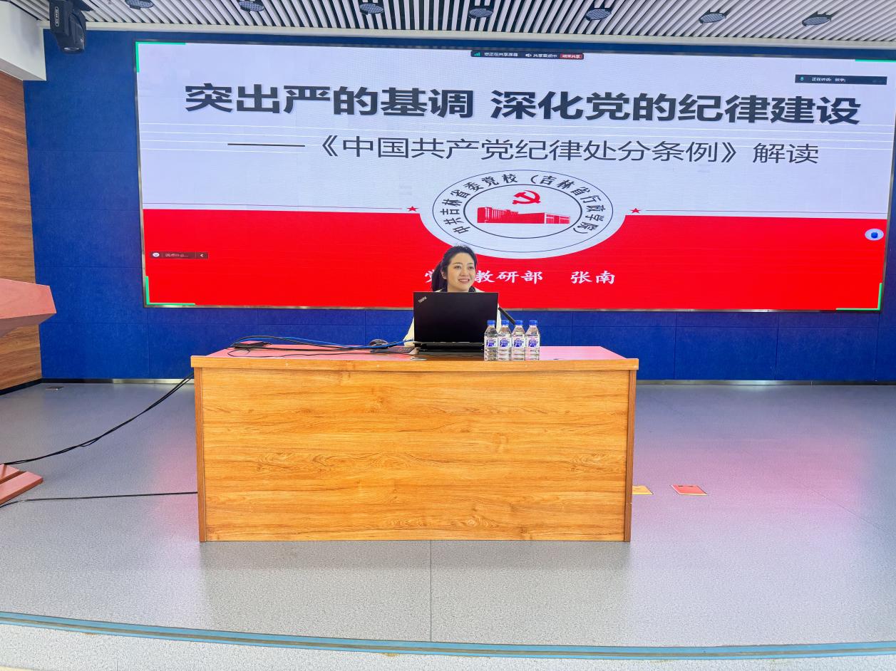 中共吉林省委党校党建教研部副主任张南副教授以《突出严的基调,深化党的纪律建设》为题作报告,系统阐述了《中国共产党纪律处分条例》主要内容,详细解读了新增和修订的条款。报告具有很强的针对性和指导性,对于帮助纪检委员理解把握《条例》的内涵要义以及今后学好、用好《条例》,自觉增强党性修养,锤炼纪律作风有着重要的作用。