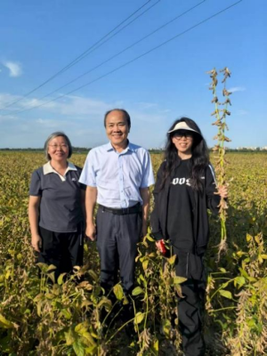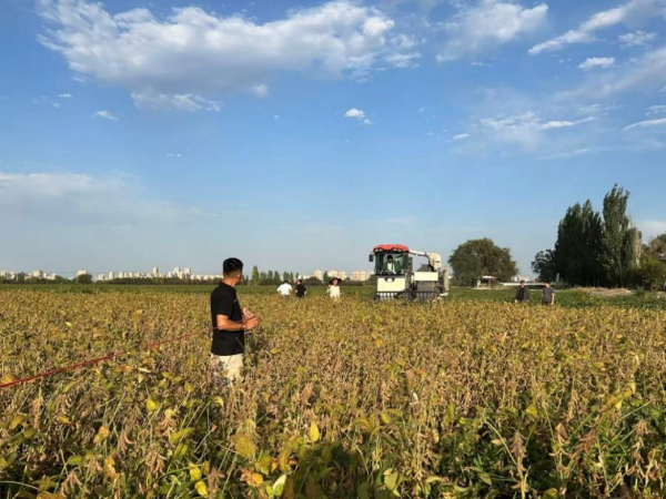 2025年8月30日,在新疆农垦科学院石河子基地,专家组对刘宝辉团队承担的“北方大豆高产新种质创制与应用项目中任务—早熟高产、理想株型种质创制”任务(2021YFD1201101-02)中理想株型种质“中牡260”(北豆40熟期组)小面积示范田进行测产。专家组由中国农业科学院油料作物研究所周新安研究员任组长、成员有新疆农垦科学院研究员战勇、新疆农业科学院研究员丛花、石河子大学教授刘峰、黑龙江省农业科学院牡丹江分院研究员任海祥。大豆育种专家杜维广研究员、国家重点研发计划项目负责人张淑珍教授、东北地理所大豆分子育种学科组翟红研究员等全程参加本次测产。