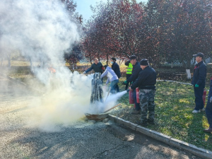 在灭火器材实操区,参训人员在物业义务消防队员的指导下,轮流操作干粉灭火器和二氧化碳灭火器,亲身参与扑灭模拟火源。大家认真听讲、积极动手,在实践中进一步掌握了灭火器材的正确使用方法,提升了扑救初起火灾的信心与能力。