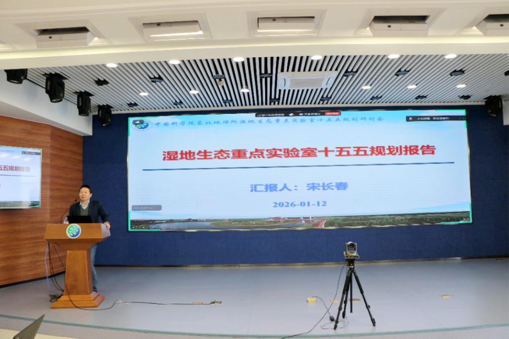 2026年1月12日,东北地理所组织召开湿地生态重点实验室 “十五五”发展规划研讨会。国家自然科学基金委员会陈宜瑜院士、中国科学院生态环境研究中心傅伯杰院士、中国环境科学研究院吴丰昌院士、中国科学院植物研究所马克平院士、生态环境部卫星环境应用中心高吉喜研究员、中国林业科学研究院王军辉研究员、中国科学院大学资源与环境学院冯仁国研究员、吉林农业大学冯江教授、东北师范大学王德利教授、中国科学院可持续发展科技研究局大气海洋与生态环境处处长任小波处长、东北地理所学术委员会主任何兴元研究员、东北地理所吕宪国研究员等应邀参加研讨会。东北地理所所长姜明研究员,党委书记、副所长王宗明研究员,副所长祝惠研究员,科研计划处处长王国栋研究员,以及湿地生态重点实验室全体科研骨干参加会议。