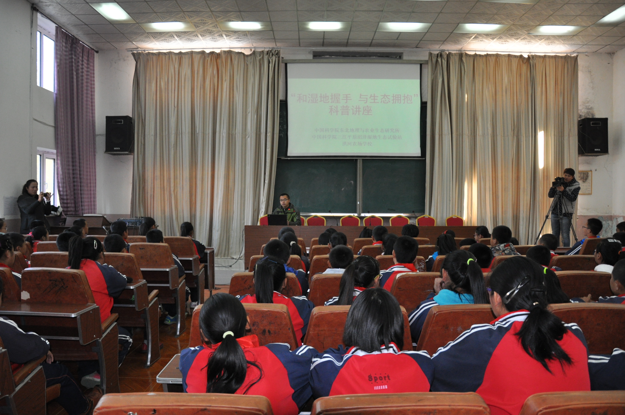 一场题为“和湿地握手,与生态拥抱”的主题科普讲座于2014年10月13日在洪河农场学校开展。