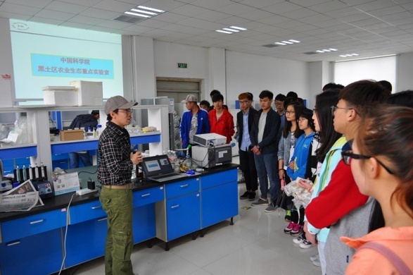 在研究所园区内的分会场,来自长春工业大学的50余师生参加了活动,参观了湿地标本馆、大气灰霾监测站、长春综合农业试验站和黑土区农业生态重点实验室,田春杰研究员、郑娜研究员、邹元春副研究员、刘波、朱先灿、张学磊等青年科学家分别围绕着“黑土生态与农业发展”、“环境健康与雾霾”、“湿地植物与生态”、“玉米高光效栽培技术”等主题向来访师生介绍了我所有关科研成果,以及与日常生活息息相关的科学常识。现场气氛热烈,参观师生就微生物对人体的影响、去除食品农药残留、避免雾霾危害、秸秆利用与还田等问题与我所科学家进行了互动交流。