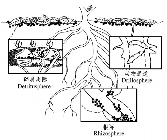 图2:根际、碎屑周际和动物通道是土壤激发效应发生的最主要部位。