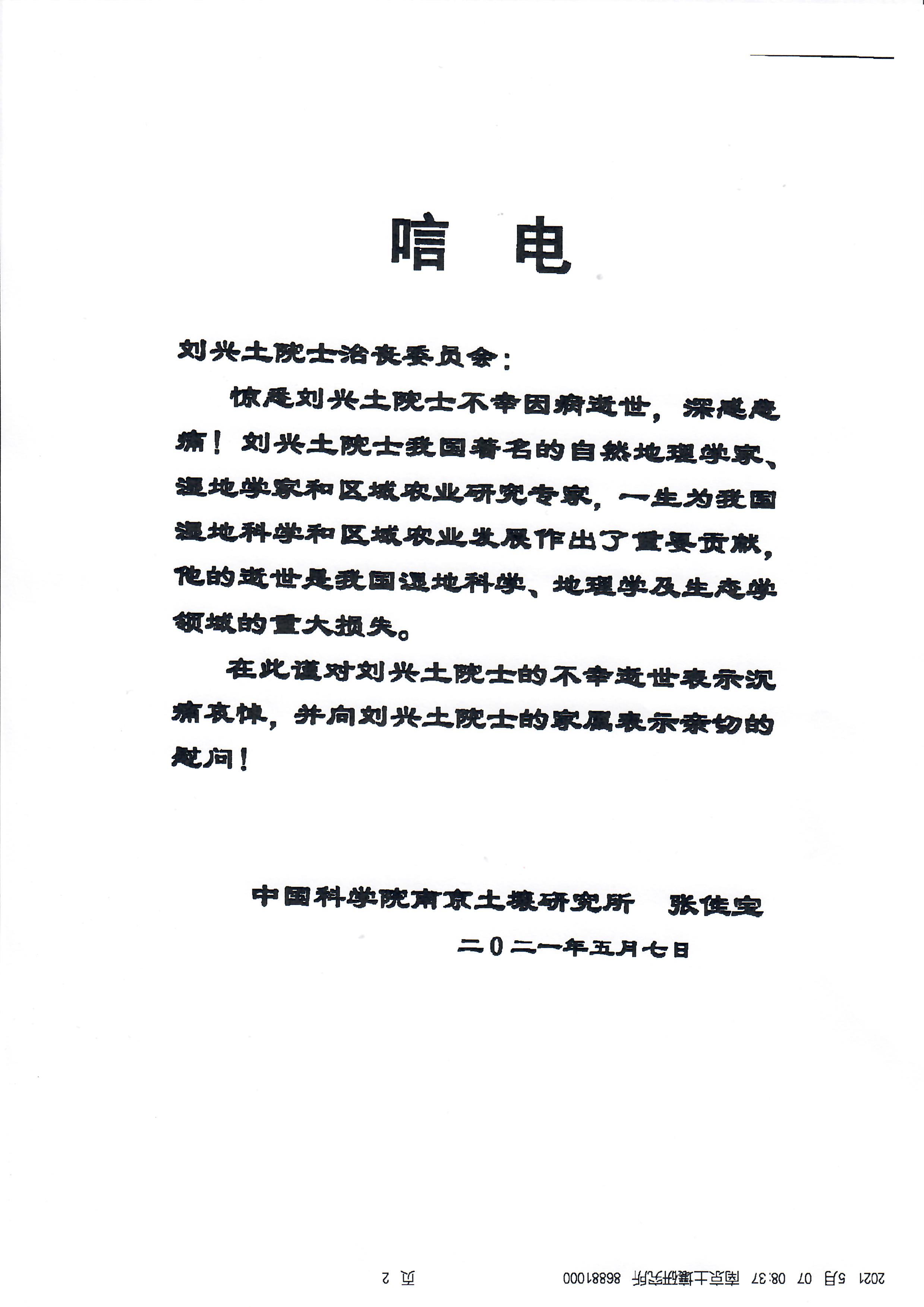 唁电-中国科学院南京土壤研究所张佳宝院士