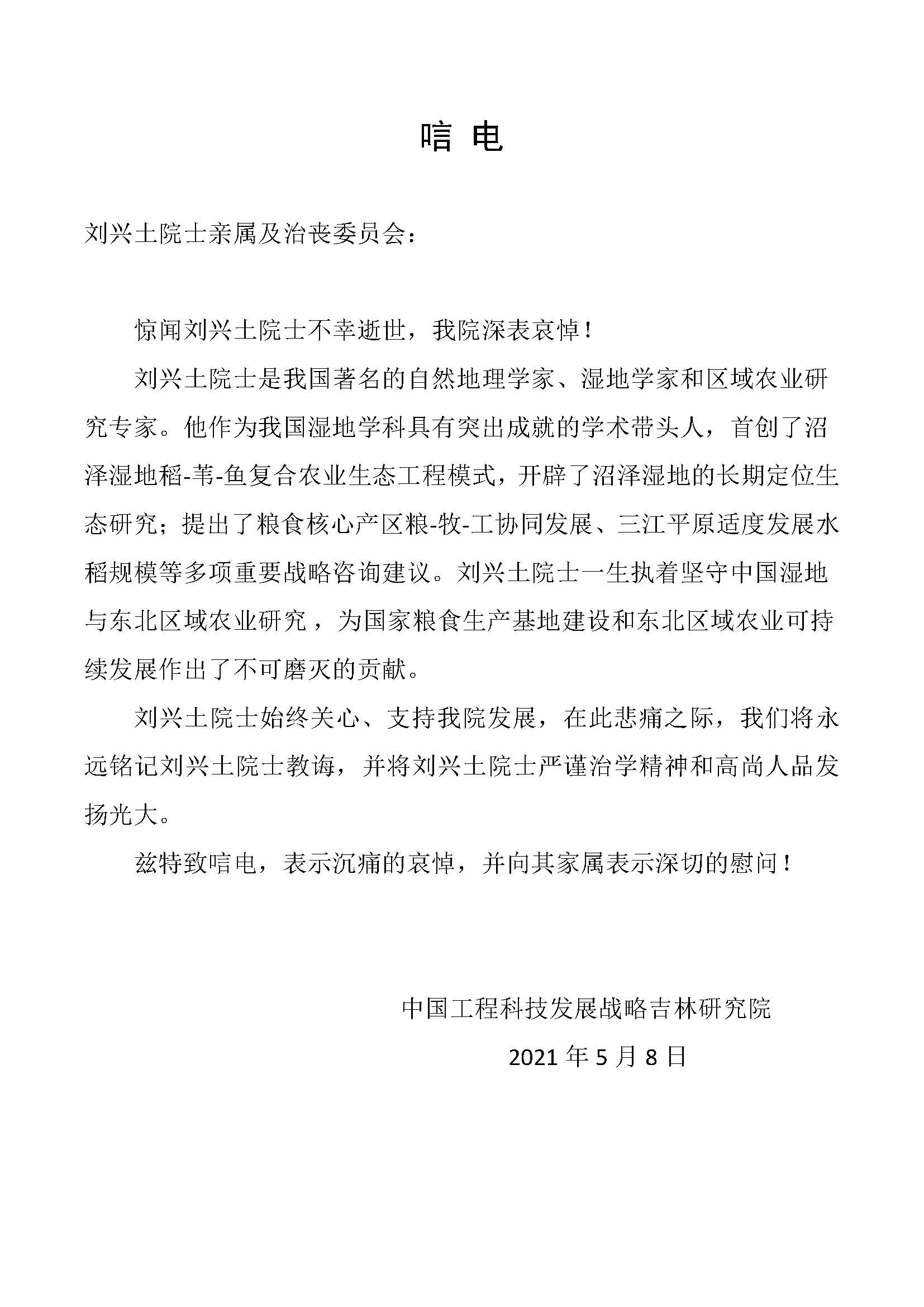 唁电-中国工程科技发展战略吉林研究院
