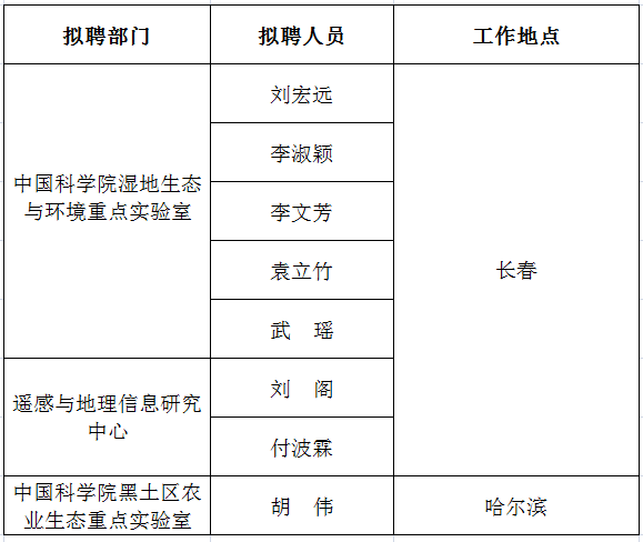 依据东北地理所公开招聘程序,在公开申报、资格审查、竞聘答辩、设岗招聘委员会考察评议与建议的基础上,经所领导班子集体研究决定,拟聘任刘宏远等8名同志来所工作,现将各岗位的拟聘人选予以公示: