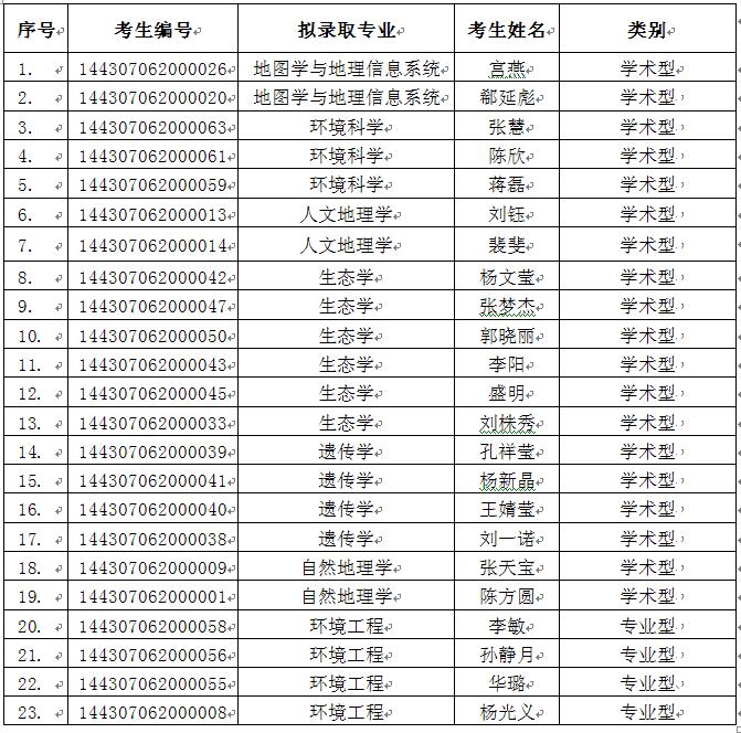 根据国家和中国科学院大学硕士招生工作的有关规定,按照一视同仁,公平竞争,择优录取的原则,东北地理所进行了2017年硕士研究生复试,对考生的德、智、体等方面和综合素质及能力进行了全面的考核。经东北地理所招生工作领导小组研究决定,现将2017年硕士研究生拟录取名单公示如下: