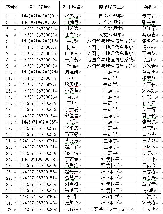 按照《教育部办公厅关于做好2017年招收攻读博士学位研究生工作的通知》(教学厅〔2017〕2号)精神和《中国科学院大学关于做好2017年秋季入学博士研究生录取工作的通知》(校发招字〔2017〕42号)精神,本着“德智体全面衡量、择优录取、保证质量、宁缺毋滥”和“公平、公正、公开”的原则,东北地理所组织了2017年博士研究生入学考试。本次博士研究生入学考试方式为“申请-审核”制,对考生的德、智、体等方面和综合素质及能力进行了全面的考核。经东北地理所招生工作领导小组研究决定,现将2017年博士研究生拟录取名单公示如下: