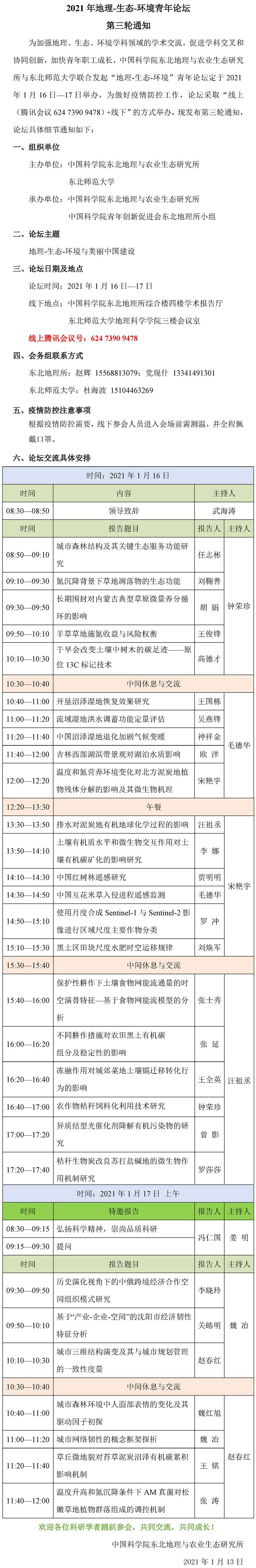 2021年地理-生态-环境青年论坛第三轮通知