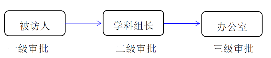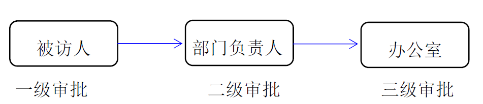3)提交访问申请后,被访人进行一级审批;部门负责人/学科组长(或者指定代理人)进行二级审批,管理部门负责人进行三级审批(视疫情形势、工作需要等决定是否启用)。