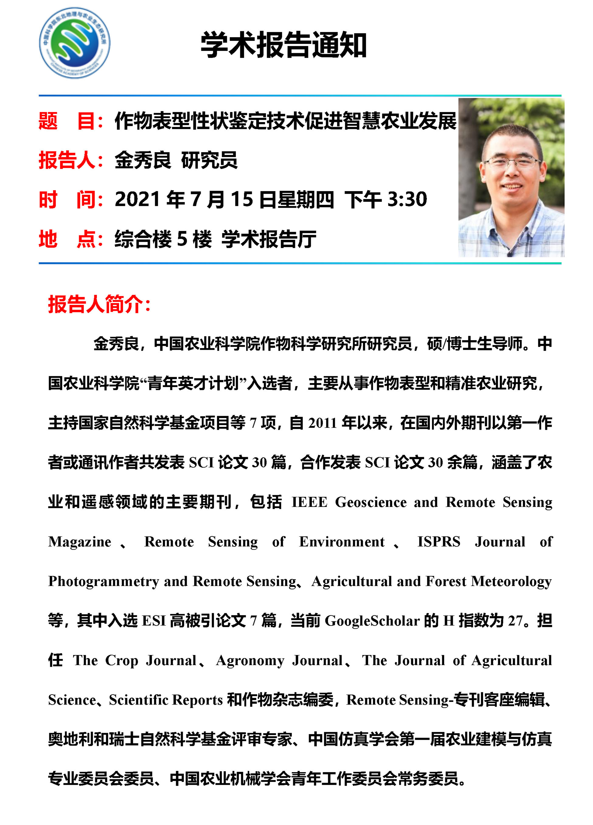 作物表型性状鉴定技术促进智慧农业发展-金秀良 研究员