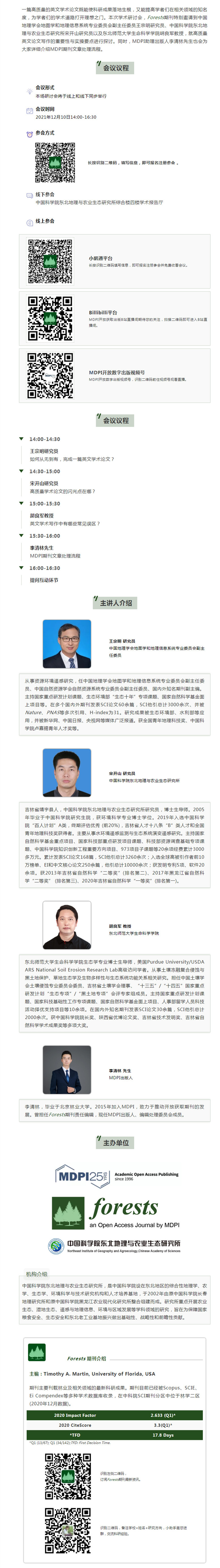 Forests期刊携手中国科学院东北地理与农业生态研究所邀您一起探讨英文学术论文写作 | MDPI 学术培训会