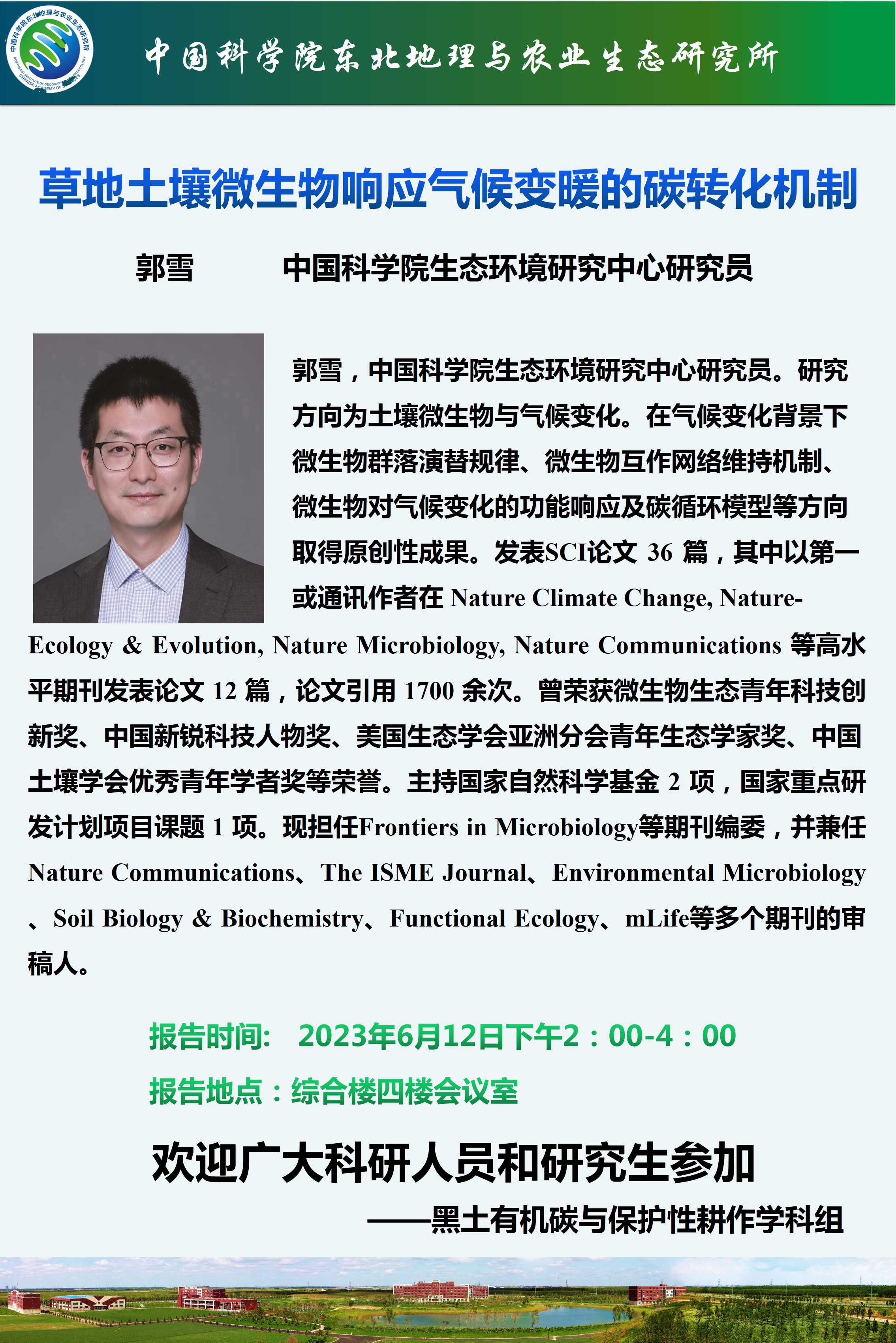 草地土壤微生物响应气候变暖的碳转化机制-郭雪 研究员