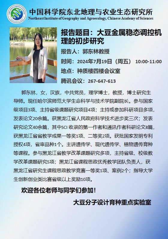 大豆金属稳态调控机理的初步研究-郭东林 教授