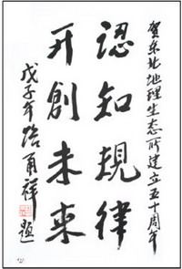 在中国科学院东北地理与农业生态研究所迎接成立50周年之际,全国人大常委会副委员长、中国科学院院长路甬祥欣然提笔,为该所写下“认知规律开创未来”八个苍劲有力的大字,不仅是对该所50年成就的肯定,更昭示着该所美好的明天。