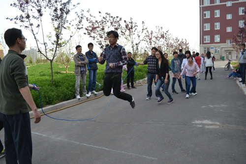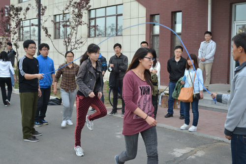 为提高全体研究生的身体素质和团队精神,我所于2014年5月9日下午在体育馆前举行了以“青春炫动,同心协力,奋勇争先”为主题的研究生拔河、跳绳比赛,全体研究生和研究生部王玉荣老师出席了本次活动。