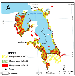 Jia M., Wang Z., Zhang Y.,Mao D., Wang C., 2018. Monitoring Loss and Recovery of Mangrove Forests during 42 years: The Achievements of Mangrove Conservation in China. International Journal of Applied Earth Observation and Geoinformation, 73, 535-545.