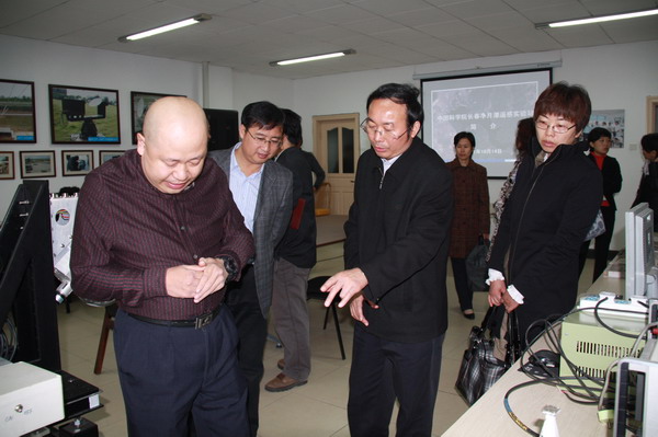 随后,吕永龙局长一行参观了遥感与地理信息研究中心微波遥感实验室。赵凯研究员向吕局长一行介绍了我所微波遥感研究工作和取得的成果,特别是获得国家科技进步一等奖的国家科技攻关项目“机载三频段微波辐射计及其应用”、“神舟四号”多模态微波遥感器辐射测量模态的研制。张树文研究员介绍了基于科技部基础性工作专项“中国北方及其毗邻地区综合科学考察”及973计划“大尺度土地利用变化对全球气候的影响”在东北亚资源联合调查方面所取得的成果。