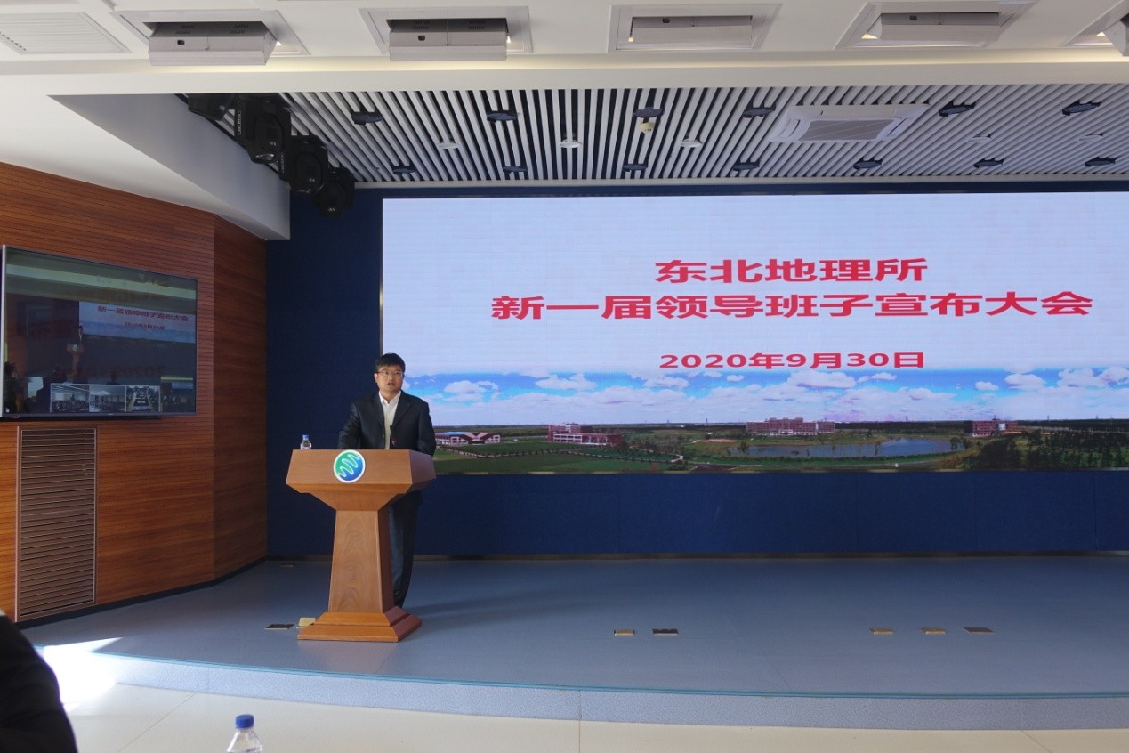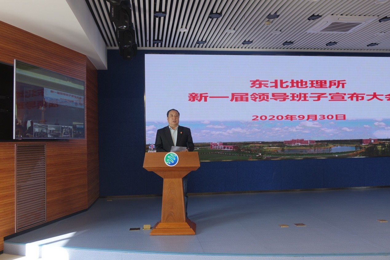 2020年9月30日,中国科学院东北地理与农业生态研究所召开了新一届领导班子宣布大会。中国科学院长春分院分党组书记、副院长马七军,院长甘建国,副院长刘晓冰,组织人事处处长彦飞,东北地理所领导班子成员、院士、党委委员、纪委委员、管理部门正副职、实验室(中心)正副主任、党支部(党总支)书记、正高级专业技术人员、副高级专业技术人员、管理部门全体人员、工会代表、离退休职工代表、研究生代表等170余人参加本次会议。会议由马七军主持。