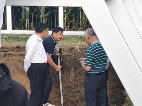 首先,中科院东北地理所关义新研究员汇报了保护性耕作梨树模式万亩示范区的实施情况,黑土粮仓科技会战梨树示范区紧紧围绕“梨树模式”保护性耕作技术示范推广中的问题,从新技术的引进评估,关键成熟配套技术的优化集成,到综合技术的示范推广,进行技术的完善升级及高标准示范,并在吉林省不同生态区建立了17个院省地联动高标准示范田,以加速保护性耕作技术的示范推广。张小宏一行对示范区主推技术与模式、土壤剖面的黑土差异、玉米育种联合体新品种展示等内容十分关注。