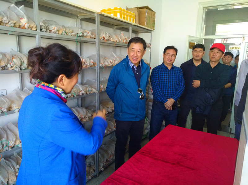在北安农管局蓝靛果新品种与标准化栽培试验示范基地,何岩副秘书长听取了国家“十三五”重点研发项目执行和蓝靛果品种培育和引进及示范基地建设情况介绍,详细询问了蓝靛果种植、蓝靛果与大豆间作栽培模式及产品开发等相关问题。