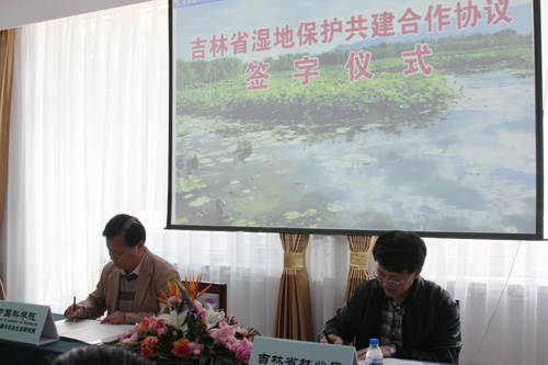 2011年10月25日上午,吉林省湿地保护管理共建协议签署会议在吉林省野生动物救护繁育中心召开,吉林省副省长、省湿地保护管理协调领导小组组长王守臣到会讲话,会议由省政府副秘书长刘延春主持。会上,我所胡乃泽书记代表何兴元所长与吉林省林业厅张德新厅长共同签署了《吉林省湿地保护管理共建协议》,协议规定双方要在湿地科研项目、培养湿地专业队伍、湿地学术研讨等方面展开合作并建立年会协商机制,充分发挥我所在湿地领域的科技支撑和保障作用,用以提高湿地的保护管理水平,增强公众湿地保护和参与意识,推动社区共管共建。