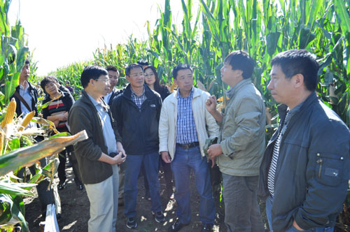 与会专家首先参观了中国科学院东北地理与农业生态研究所优质高产多抗玉米新品种选育展示田。关义新研究员向各位专家重点介绍了我所利用流程化育种技术选育玉米新品种情况。目前我所已经选育出一批可与外资公司品种相抗衡的高产多抗玉米新品种,3年多点测试结果显示在吉林省、辽宁省等地区新品种比主推品种先玉335增产5-8%。与会专家均对我所培育的玉米新品种给予了高度评价。