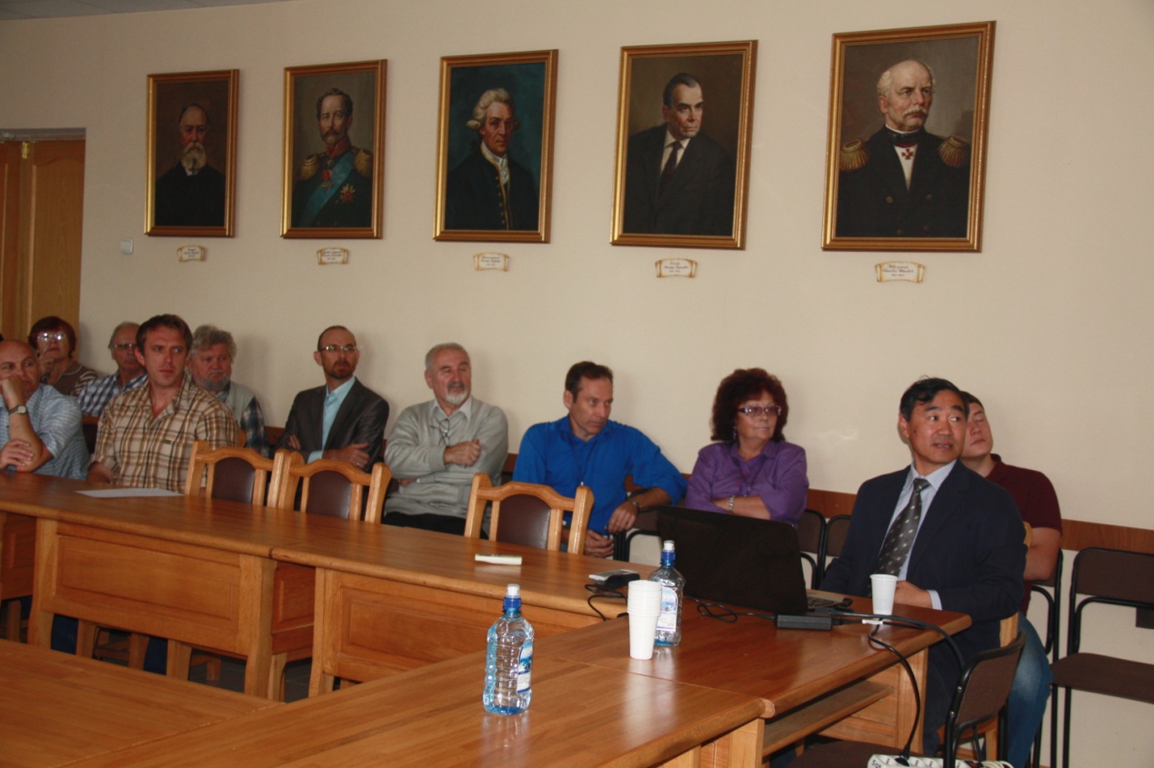 代表团首先参观了太平洋地理所地理信息中心、自然资源实验室、水文水资源实验室、海洋地貌实验室以及区域发展研究室等,俄方科学家详细介绍了他们的研究方向、研究领域以及相关研究成果,代表团就感兴趣的科学问题进行了充分交流。在巴克拉诺夫院士的主持下,双方举行了学术研讨会。何兴元所长系统介绍了我所概况、学科领域及重要研究成果;张树文研究员阐述了东北地区百年来的土地利用、土地覆盖变化,系统分析了其驱动力因子;姜明研究员介绍了三江平原湿地概况、湿地景观、关键生态过程变化及恢复保护现状;俄方科学家从远东地区自然资源概况、流域水文观测、湿地物种保护等领域做了相关报告。