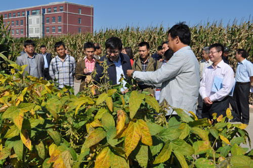 在农业科研楼,阴和俊副院长考察了我所大豆分子育种学科组和盐渍土生态与改良学科组的部分实验室,刘宝辉所长助理、冯献忠研究员、梁正伟研究员分别就实验室概况及各自研究领域的科研成果、进展做了汇报。