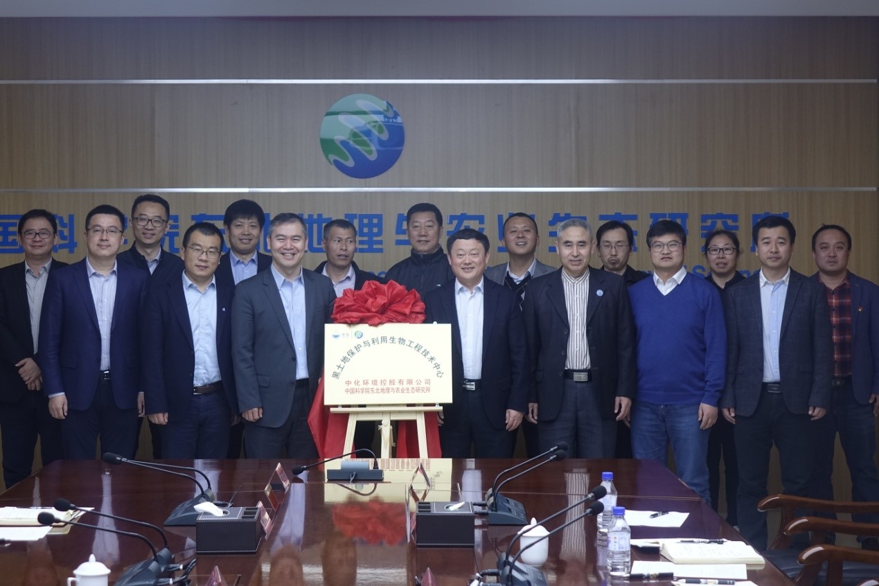 2021年3月25日,黑土地保护与利用生物工程技术中心(以下简称“中心”)签约仪式在长春举行,吉林省副省长李伟、吉林省政府副秘书长徐亮、吉林省四平市委书记郭灵计、中国科学院长春分院院长甘建国、东北地理所所长姜明、中化环境控股有限公司党委书记崔焱、总经理助理曲风臣等参加了签约仪式。姜明、曲风臣代表双方在协议上签字。
