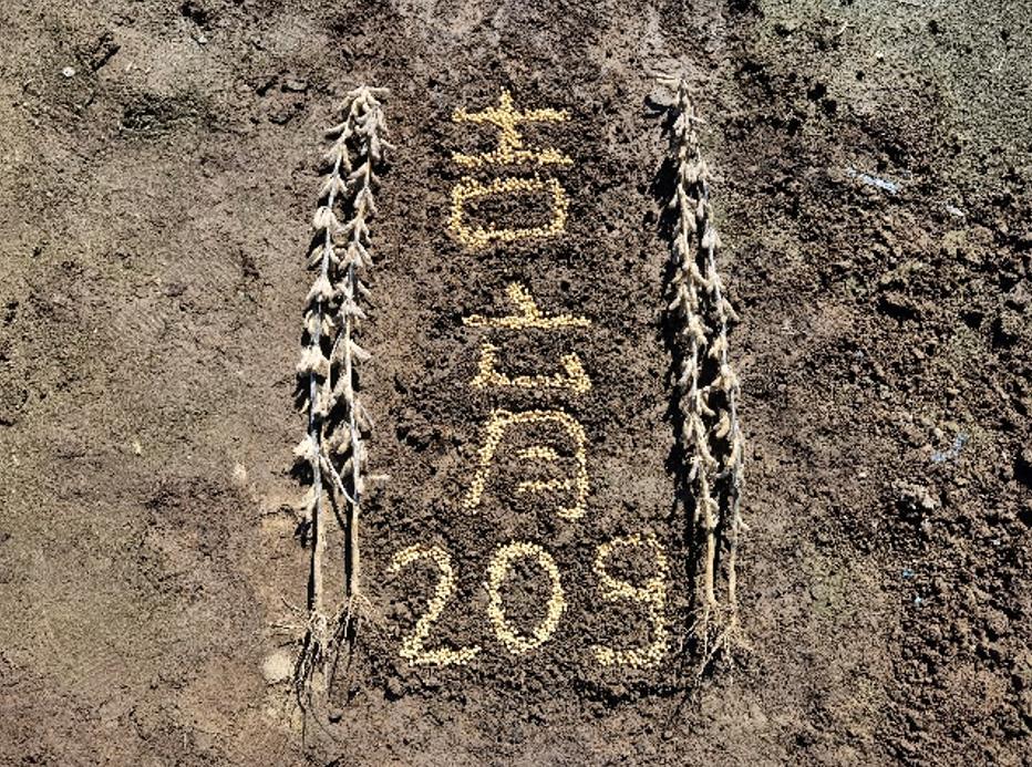 2021年大豆高产攻关示范田采用吉林省农业科学院培育的高产大豆新品种吉育209,示范面积65亩,攻关产量目标250-300kg。大豆行距65cm,密度22万株/hm2。适时进行秋整地,结合整地、起垄施入底肥每公顷磷酸二胺150 kg、尿素50 kg、硫酸钾50 kg,施肥深度10cm。应用寡糖生物农药、氨基酸液肥、微生物菌剂等提高大豆免疫力;应用S-诱抗素及白僵菌等防治大豆害虫;采用0.1%芸苔素内酯进行种子包衣;采用26.7%噻酮磺隆·异噁唑草酮悬浮剂每公顷500ml进行苗后茎叶除草。