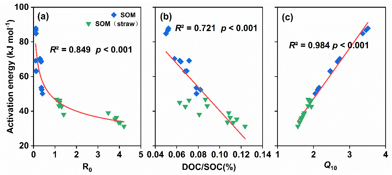 论文信息:Peng He, Lu-Jun Li*, Shan-Shan Dai, Xiao-Li Guo, Ming Nie, Xuechen Yang*, Yakov Kuzyakov. Straw addition and low soil moisture decreased temperature sensitivity and activation energy of soil organic matter. Geoderma, 2024, 442, 116802.