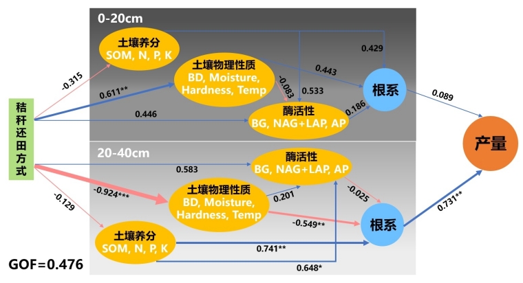 图1 土壤理化属性和微生物性状对玉米产量的影响