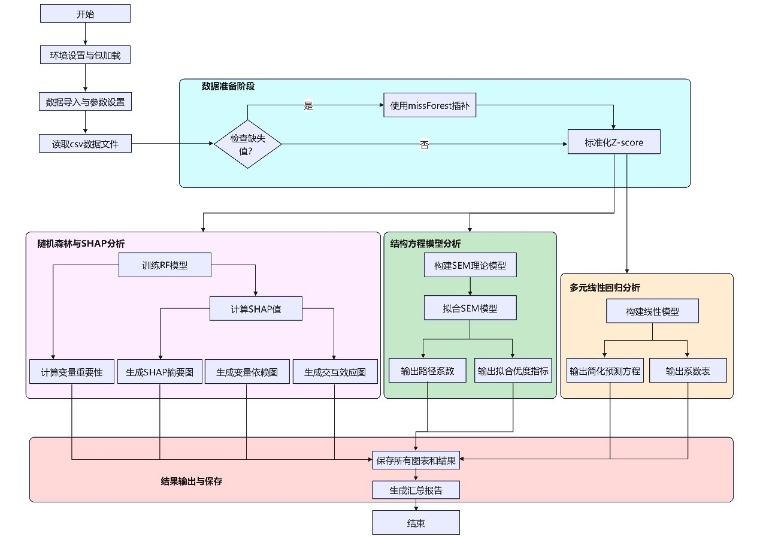 耦合可解释性机器学习与结构方程模型的驱动因素定量化分析方法(RF + SHAP + SEM + LM)