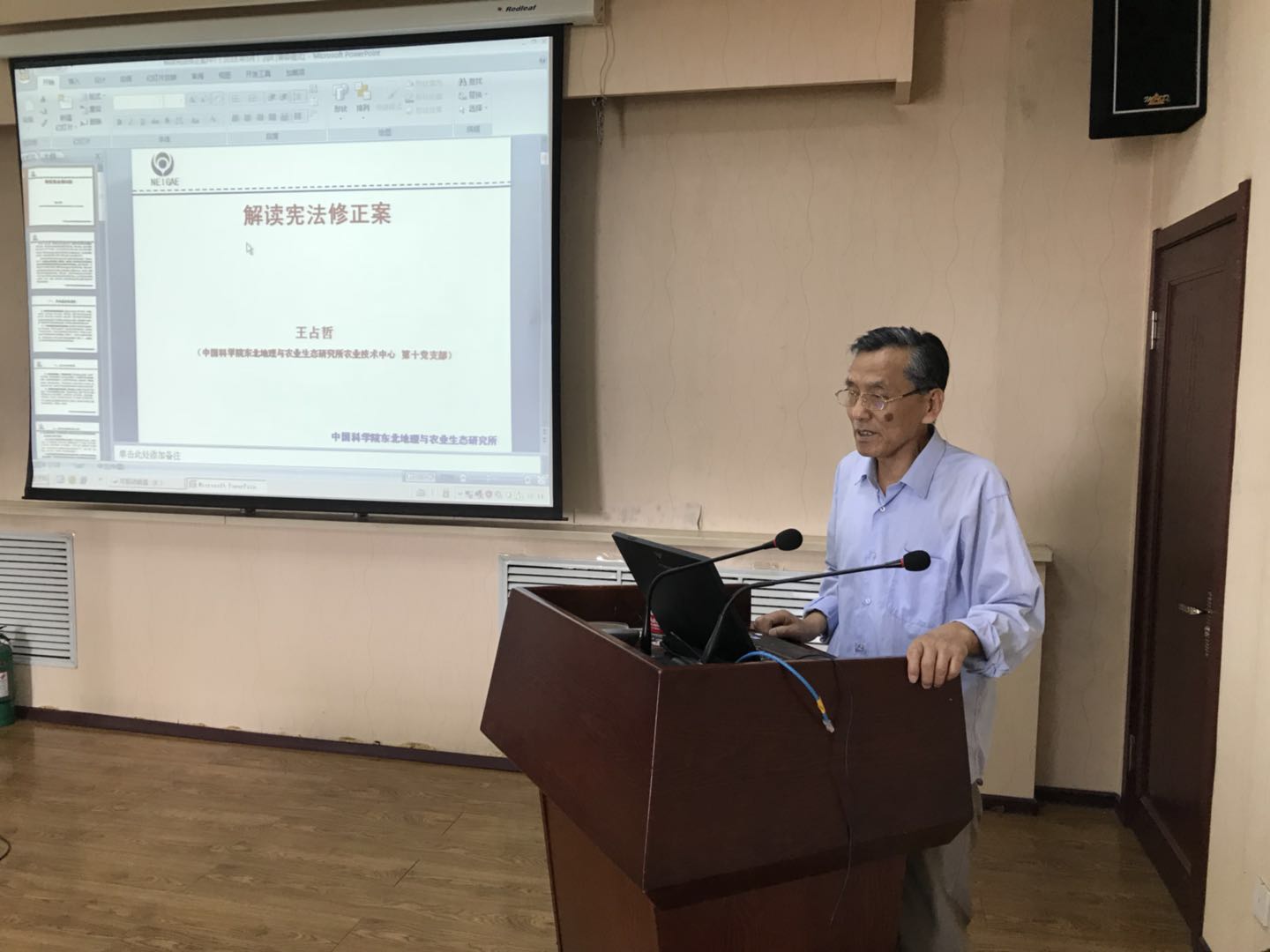 支部副书记王占哲老师利用多媒体就学习宣传贯彻《宪法》精神文件做出详细解读,多媒体图文并茂,生动活泼,使与会的老党员深受教育。通过老党员、老干部原原本本、认认真真学习《宪法修正案》,加深理解,联系实际学懂弄通。