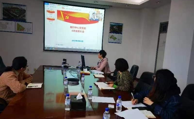 4月25日,学术期刊中心党支部在综合楼五楼会议室召开四月份支部大会集中学习习近平新时代中国特色社会主义思想,会议由支部书记商丽娜主持,支部全体党员通过线上和线下方式参加会议。