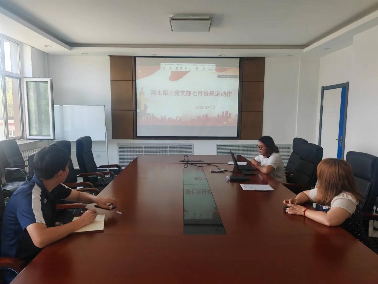 7月12日,黑土第三党支部以集中观看“七一”专题党课为主要内容开展主题党日活动,活动由支部书记邹文秀主持。