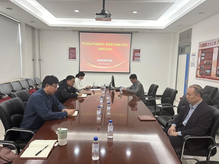 3月29日,区域发展党支部组织开展“努力抢占科技制高点 发扬黑土精神立新功”主题党日活动,活动由支部书记刘文新主持。