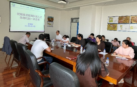 王宗明宣贯了“统筹推进教育科技人才体制机制一体改革”举措,重点介绍了深化教育综合改革、成果转化、人才流动与评价、生态文明体制改革等重要内容,并结合所情分析,鼓励与会党员明确努力方向,聚焦主责主业,在抢占科技制高点中发挥党员先锋模范作用。