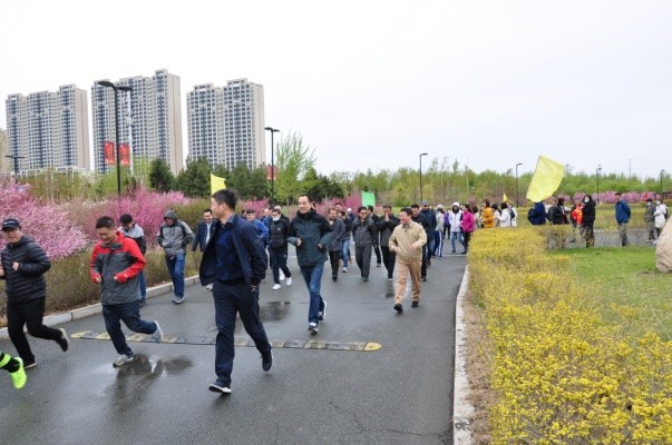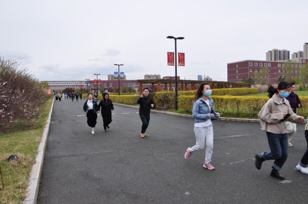 哈尔滨所区同步开展环所跑活动,参赛者互相加油、欢呼喝彩,欢声笑语此起彼伏。