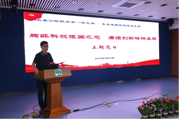 为深入推进“传承老科学家精神 弘扬新时代科学家精神在行动”专项工作,激发广大党员干部自立自强、爱国奉献、科技报国的奋斗精神,以昂扬的精神面貌和优异的成绩迎接党的二十大胜利召开,9月16日,东北地理所遥感党支部与长春分院机关第一党支部开展“胸怀科技报国之志 赓续创新精神血脉”联学共建主题党日活动。长春分院分党组书记、院长甘建国,长春分院分党组副书记(正局级)、副院长马七军,长春分院分党组成员、纪检组组长范存波,东北地理所党委书记、副所长苏阳,党委副书记、纪委书记王晓慧出席活动。遥感党支部与分院机关第一党支部共40余名党员参加活动。活动由长春分院机关第一党支部书记赵军主持。