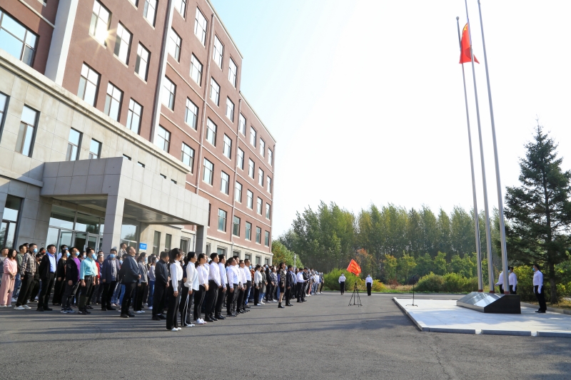 伴随着庄严雄壮的国歌声,鲜艳的五星红旗冉冉升起,全体人员庄严肃立,齐唱国歌,行注目礼。