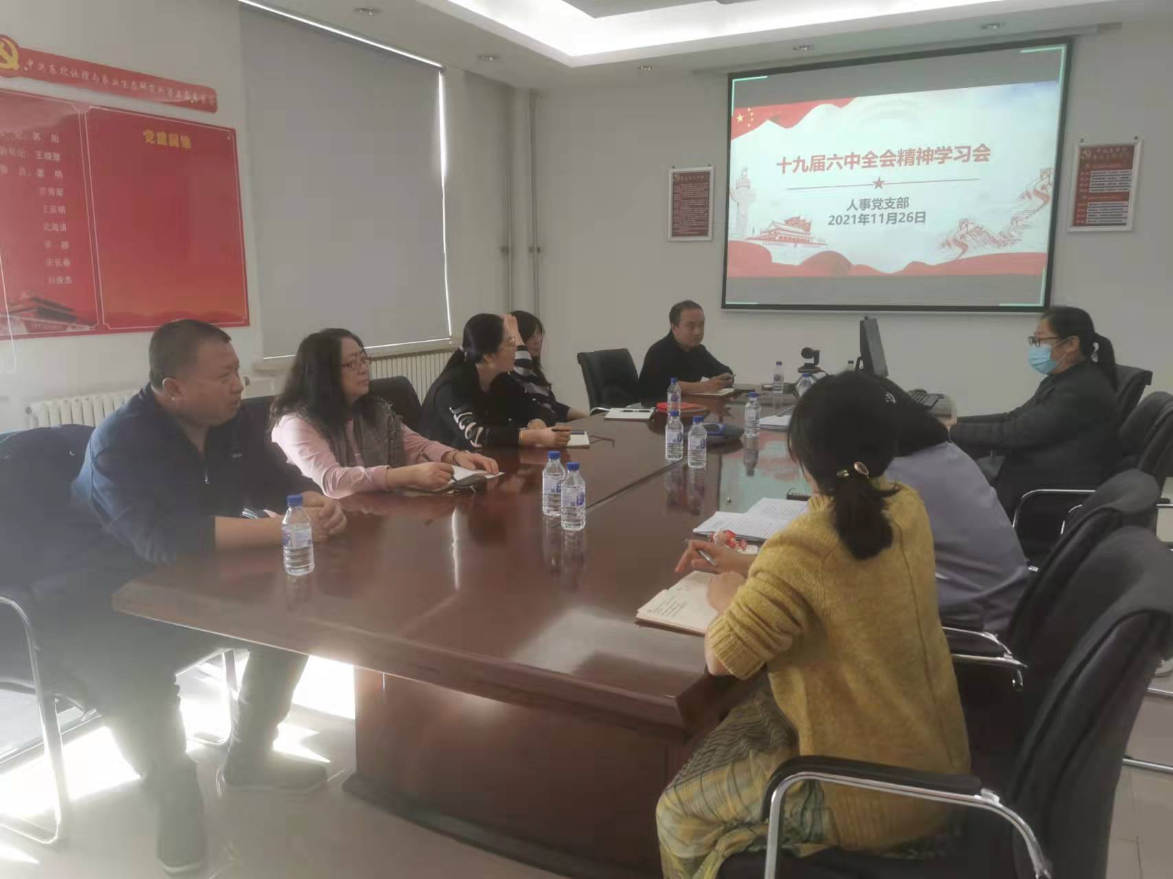 11月26日,东北地理所人事党支部开展“学习贯彻中国共产党第十九届中央委员会第六次全体会议精神”主题党日活动暨支部大会,会议由党支部书记郭琳主持,副所长王宗明参会并讲党课。